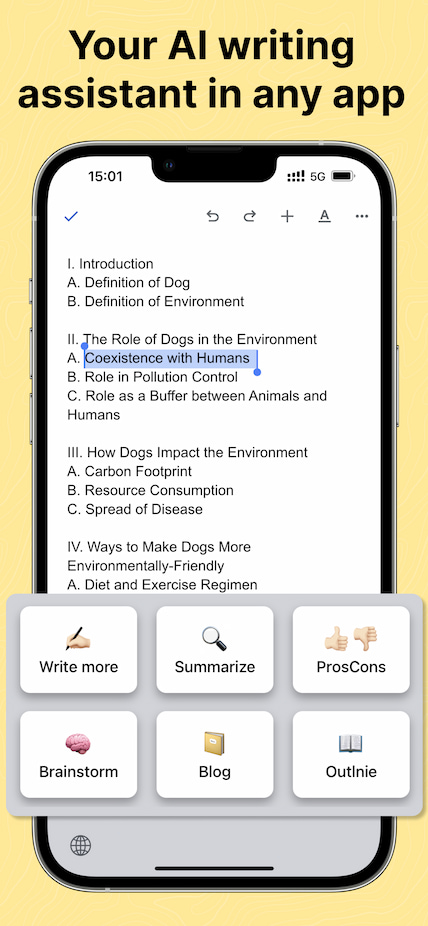 I developed this app in early December 2022. Since then, many people have cloned our app (I even have a referral link from UpWork and Fiverr). Don't get me wrong, I'm happy about it, but I just want to mention that we dedicated months to hacking around Apple's limitations on iOS. I can guarantee you won't find any app in the store that can offer the same value as WriteMage.