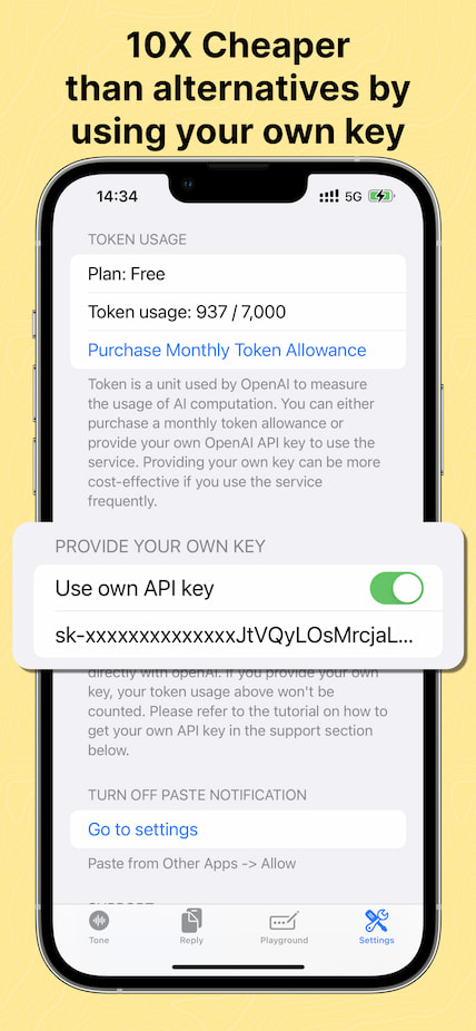 During the beta, we are offering a limited one-time deal: buy once and use it forever. This deal includes both our iOS and macOS apps. During the beta, I will pay for your usage, but later you will have to use your own OpenAI API key to continue using our app.